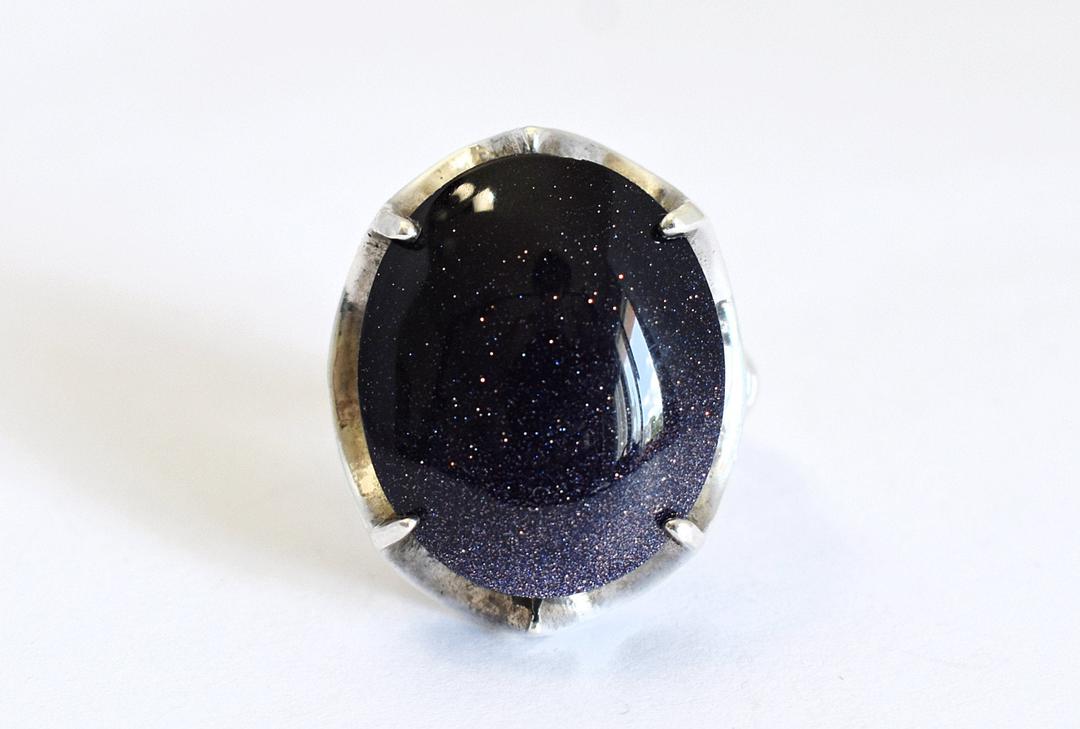Modernist 90 S Sterling Blue Goldstone Size 7 Abstract Swoops Ring Big Edgy 925 Silver Sandstone Bling Solitaire From Betsey S Beauties Of Miami Fl Attic